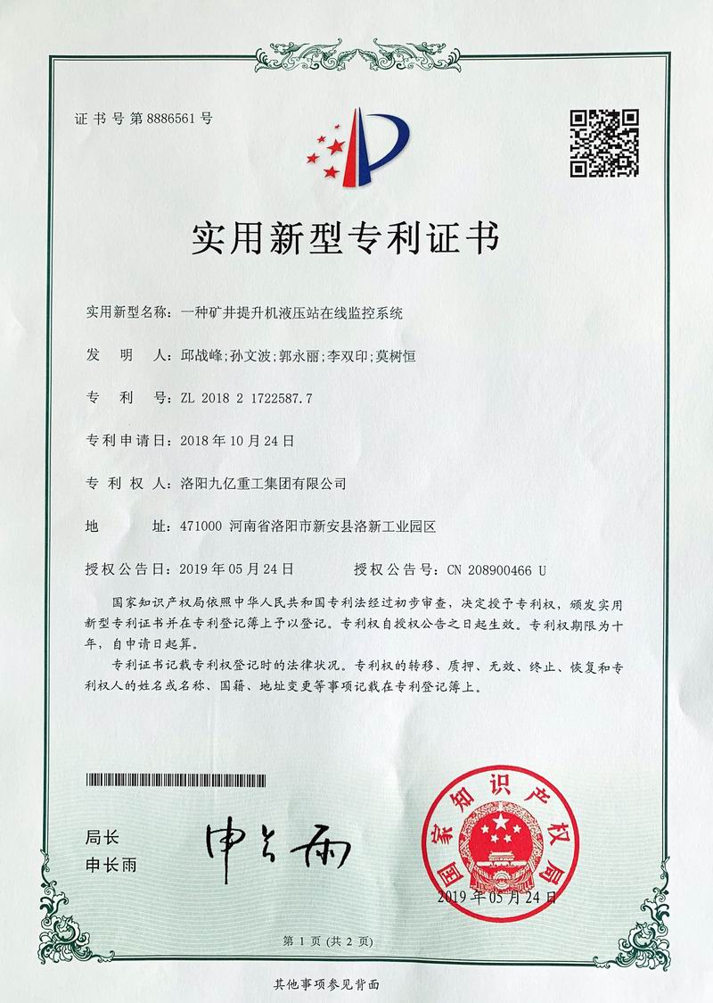 一种矿井提升机液压站在线监控系统证书