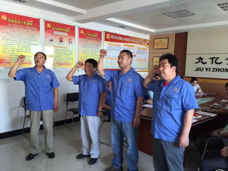 2015年7月1日:今天是中国***党94岁的生日:洛阳九亿重工集团有限公司党支部为3名新党员举行入党仪式:宣誓入党誓词;党的事业后继有人!