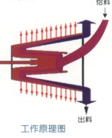 物料经挂有搪瓷的给料管及筛座进入筛蓝的底部,筛蓝内的物料受离心力作用紧贴筛面,在振动力作用下,料层均匀地向筛蓝大端移动,脱水后的物料从筛蓝四周甩出,落入机壳下部的排料口。向下排出。物料中的水分,在离心力作用下透过料层和筛缝,甩向机壳四周,沿壳体壁流向排水口排出。