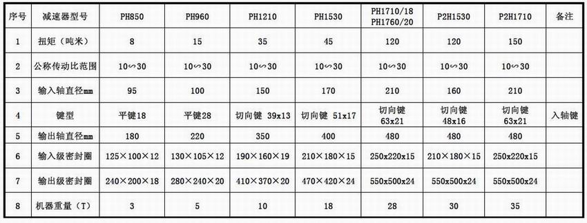 平行轴硬齿面齿轮减速器技术参数表